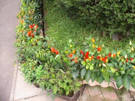 右・「七色トウガラシ」も七分咲き。