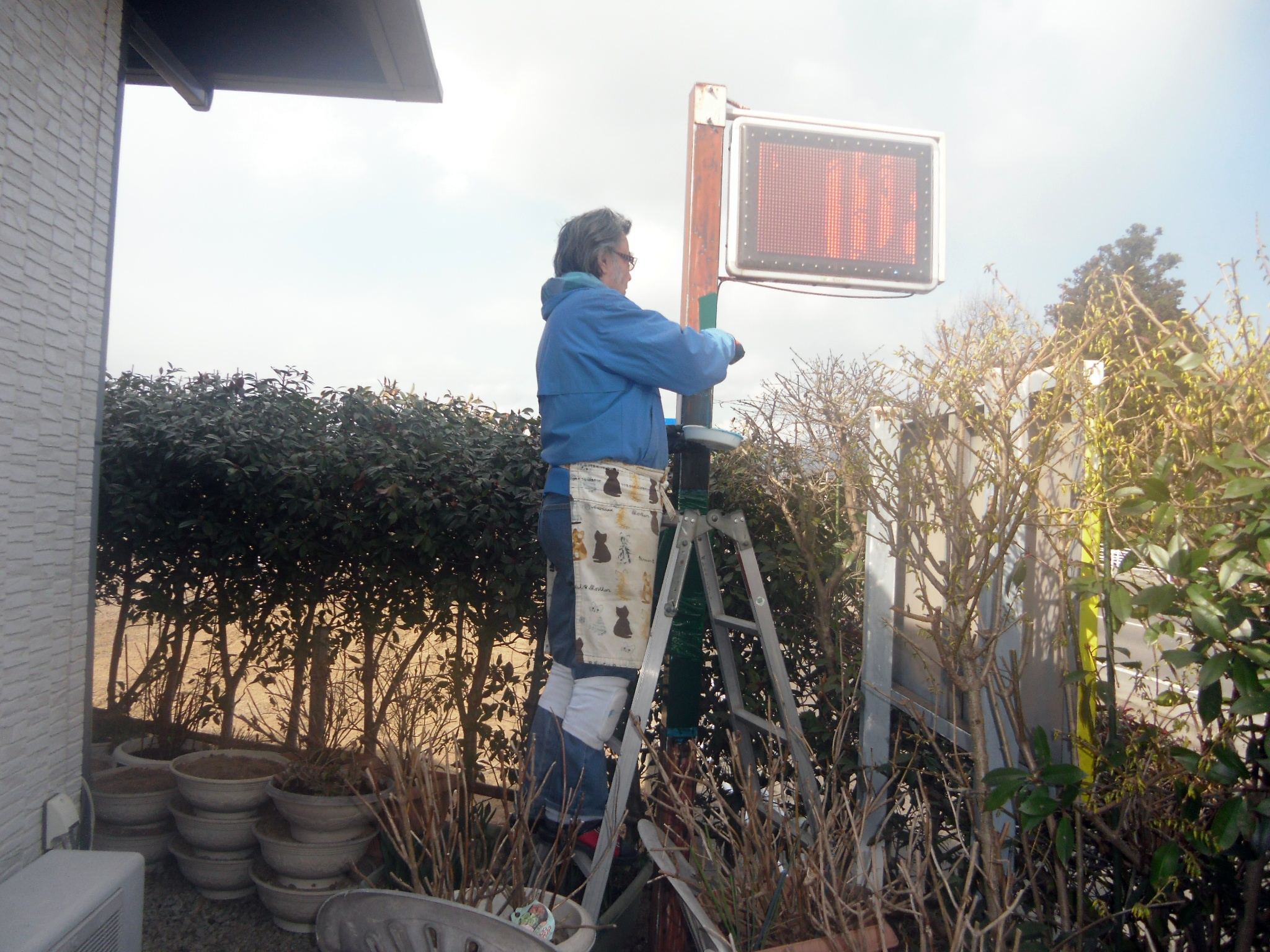店舗入り口の看板がぐら付き補修するもあてにはならん。