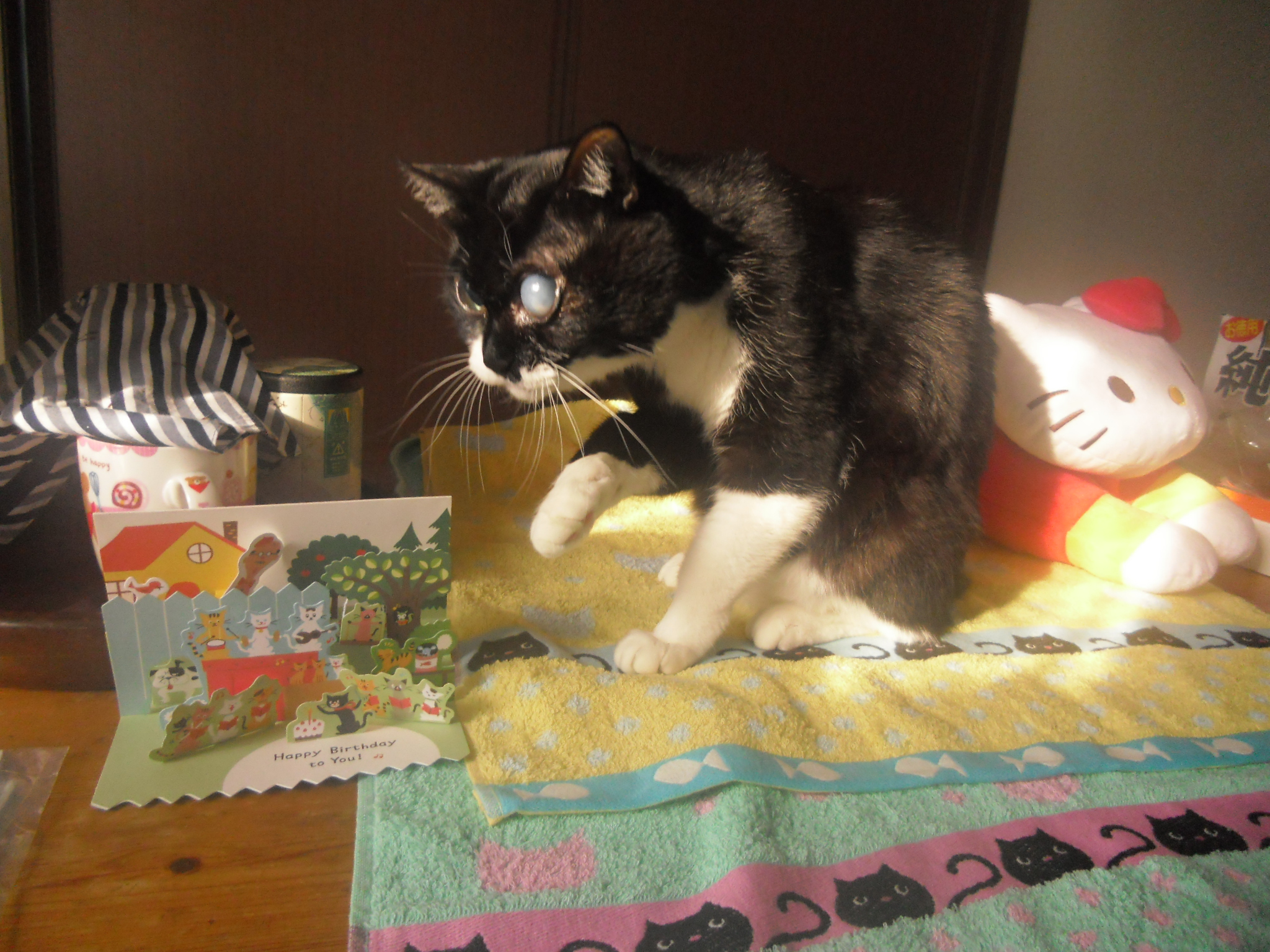 「一のバースデーでお祝い花、品、メール等数件。