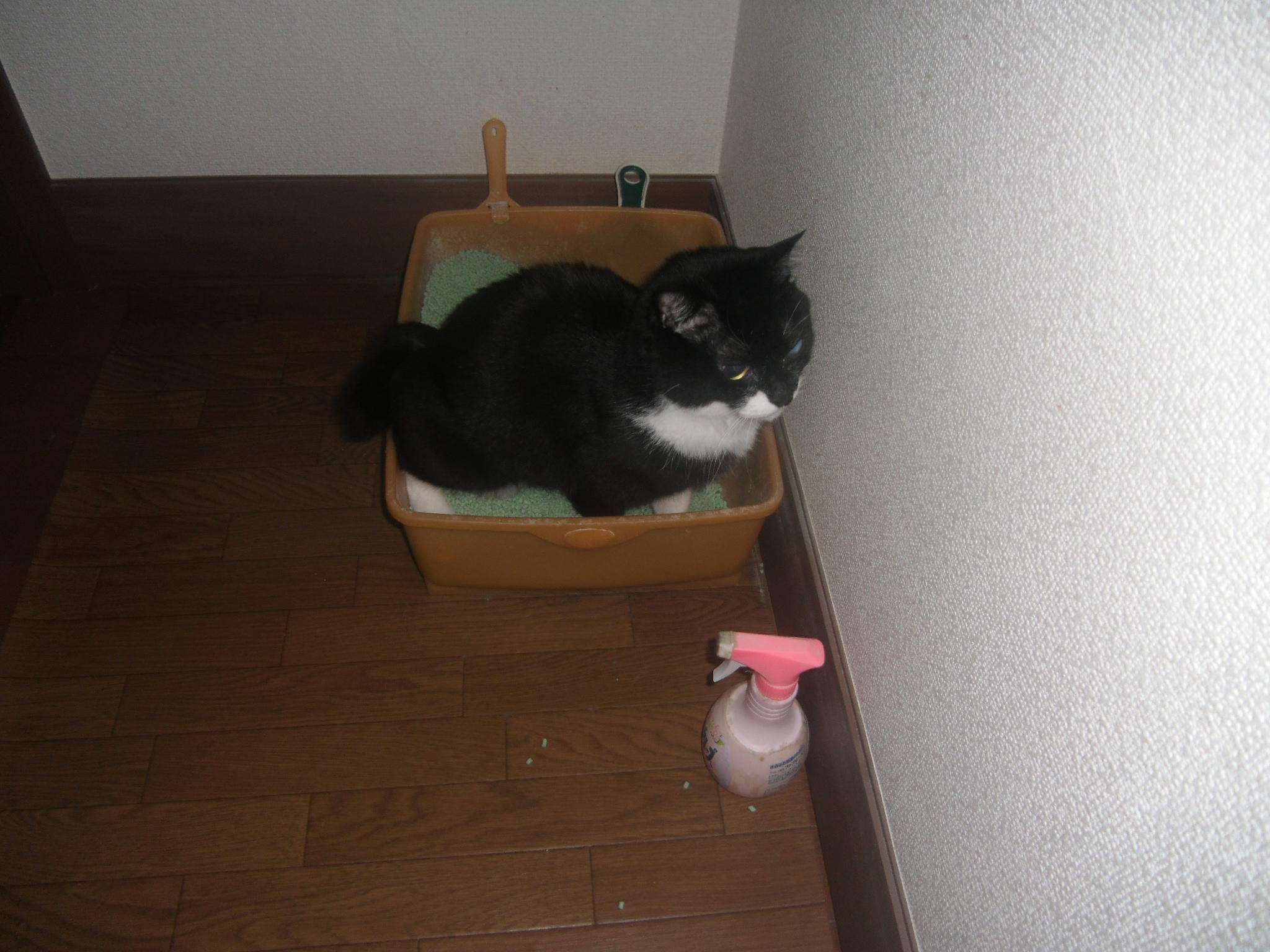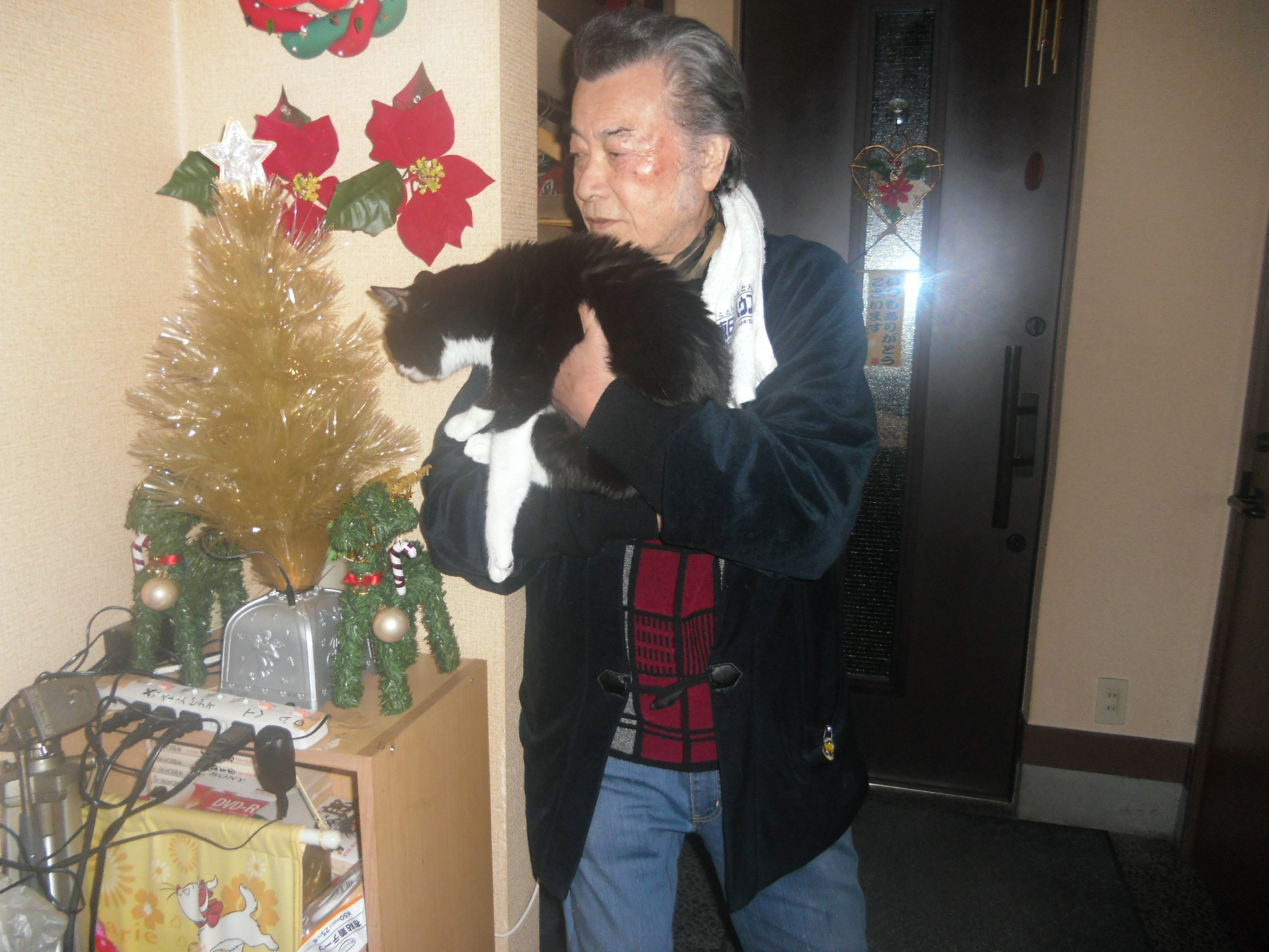 今朝6時「一」の部屋のドアーが開いていたのでいきなりベッドへ飛び乗ったら驚き慌てて起きた「一」。