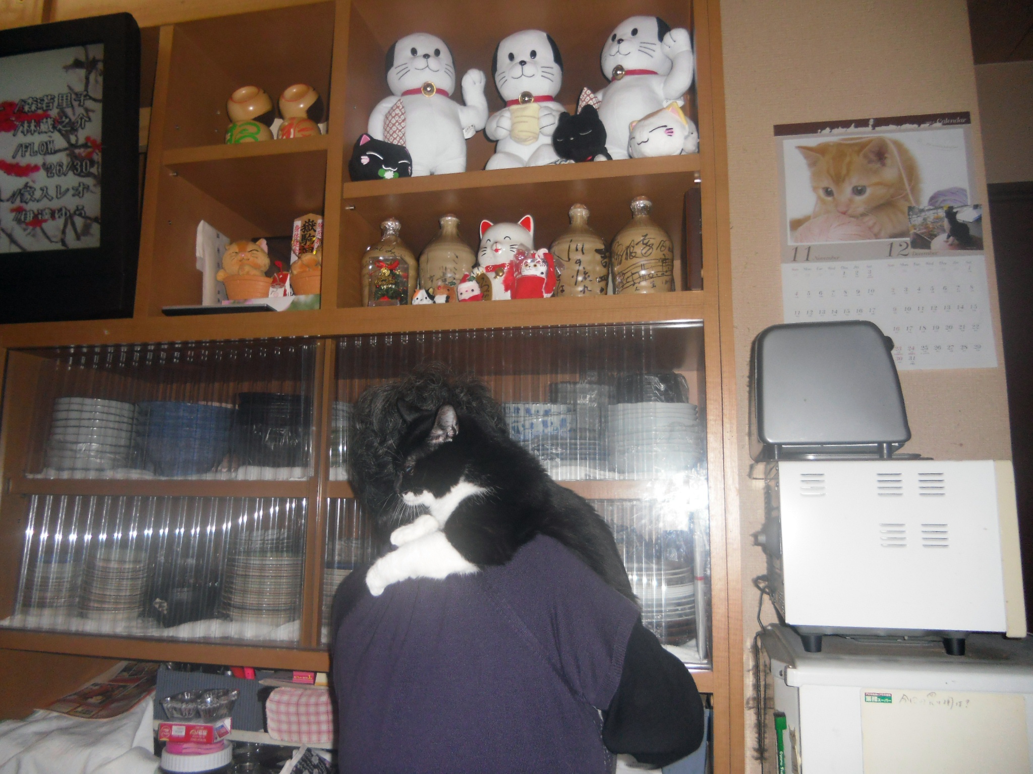 ワシは階段の上から声援してお手伝い。