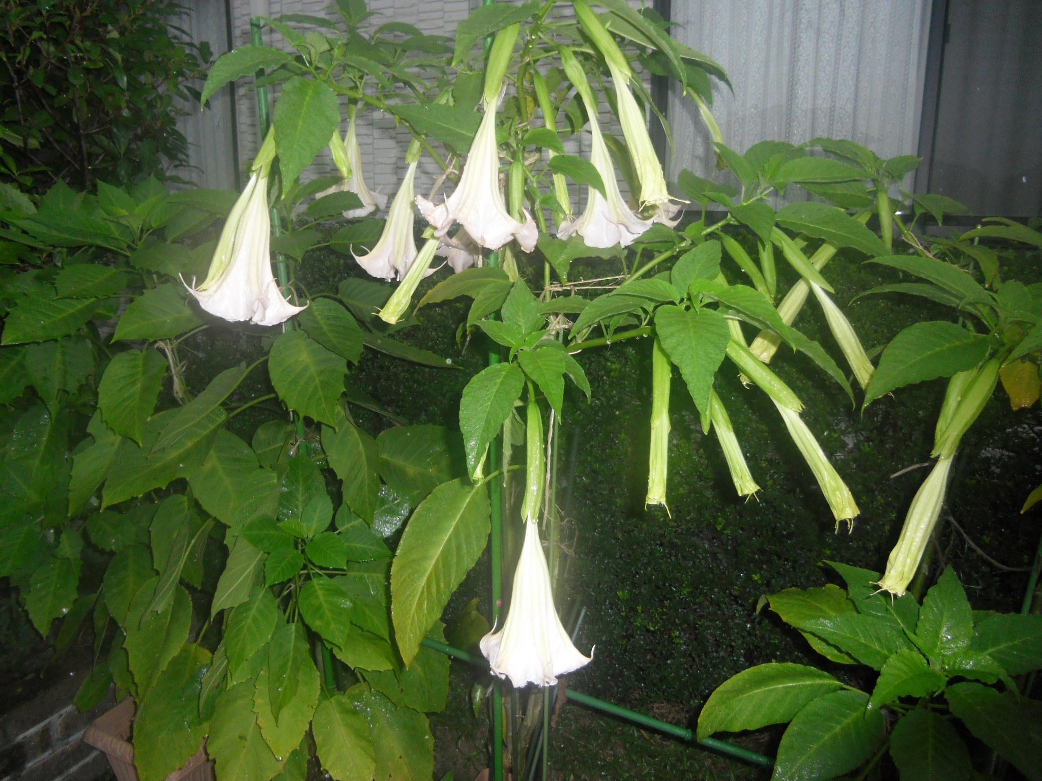 エンジェルトランペット発育遅くやっと7分咲き。