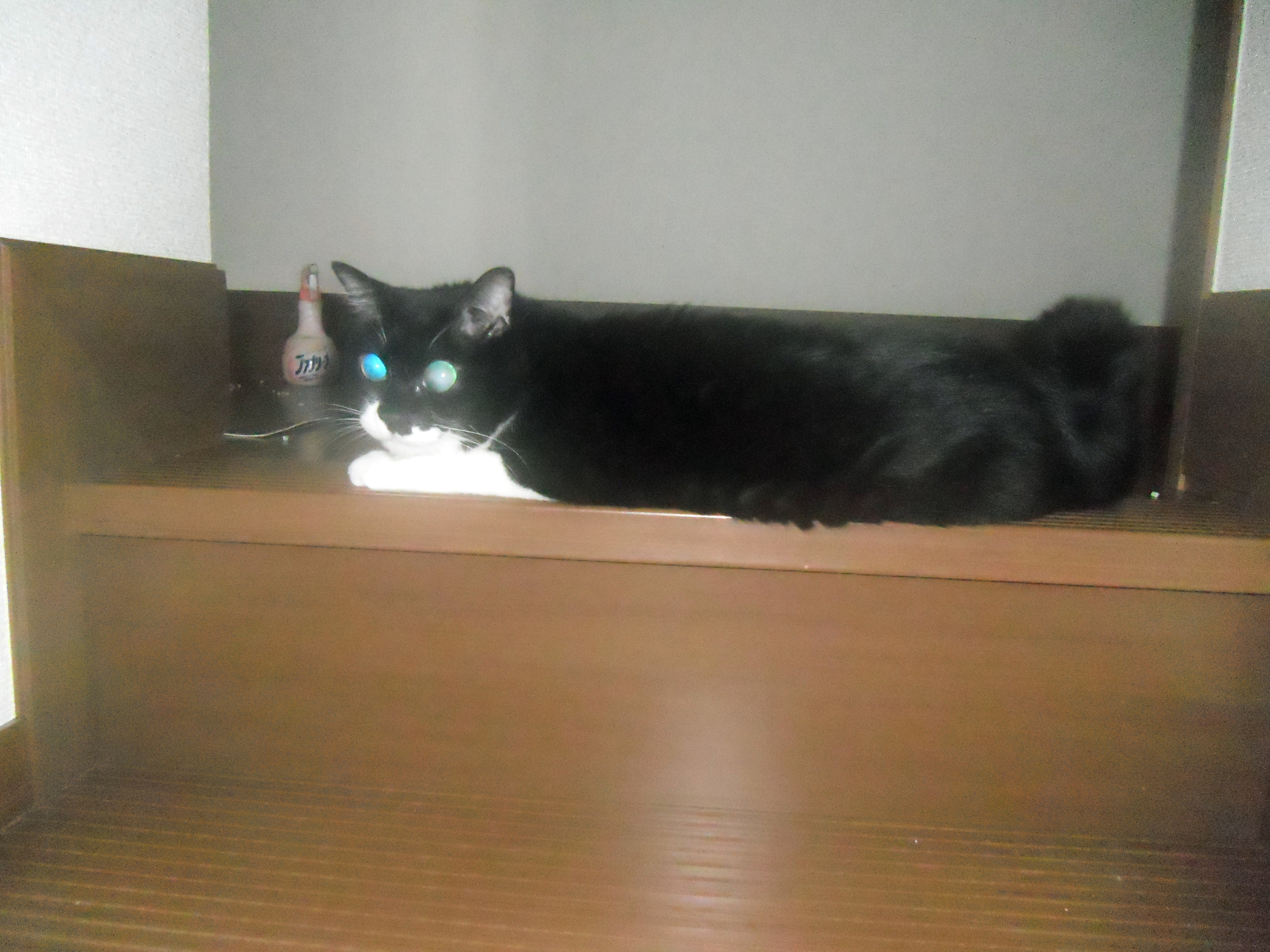 昨日も真夏日、ワシは階段上でウナギネコ。