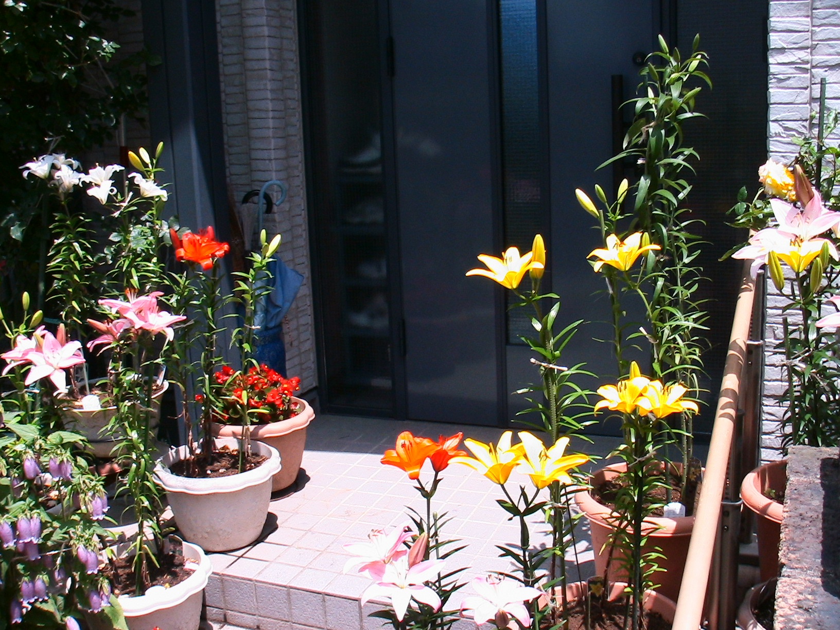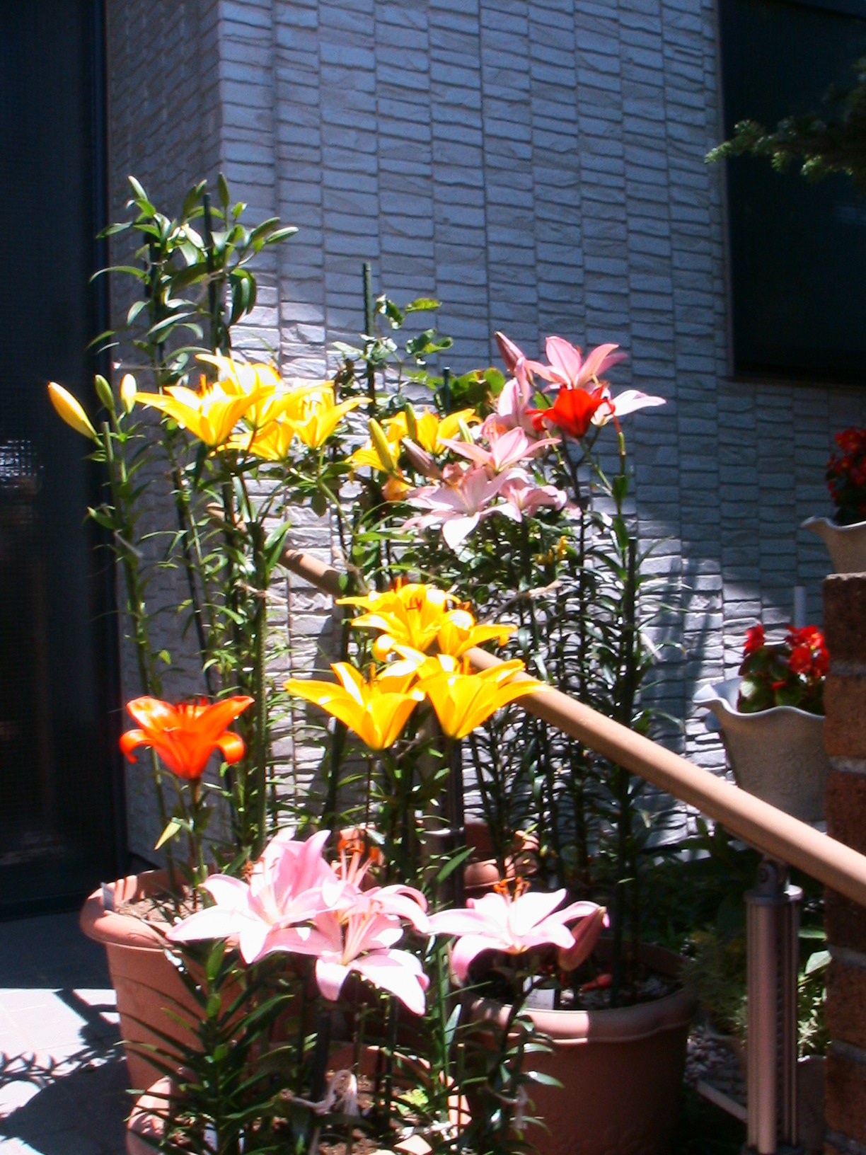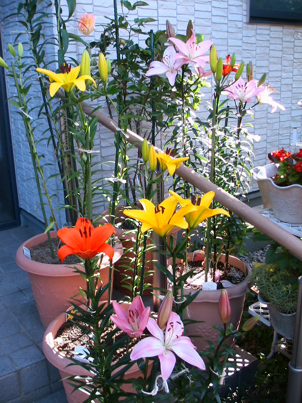 ユリ軍4色40ヶ。まだ蕾が70ヶ。