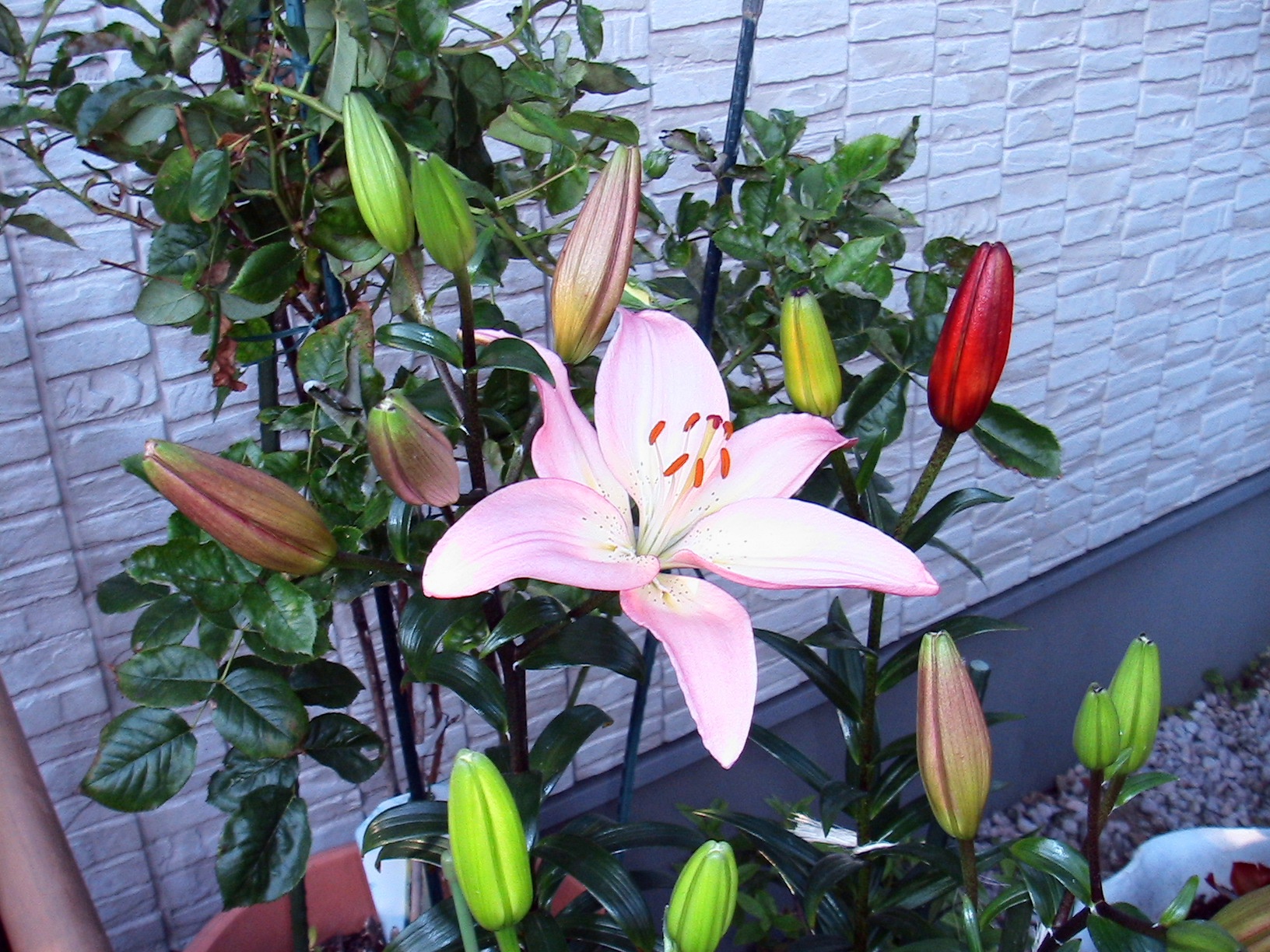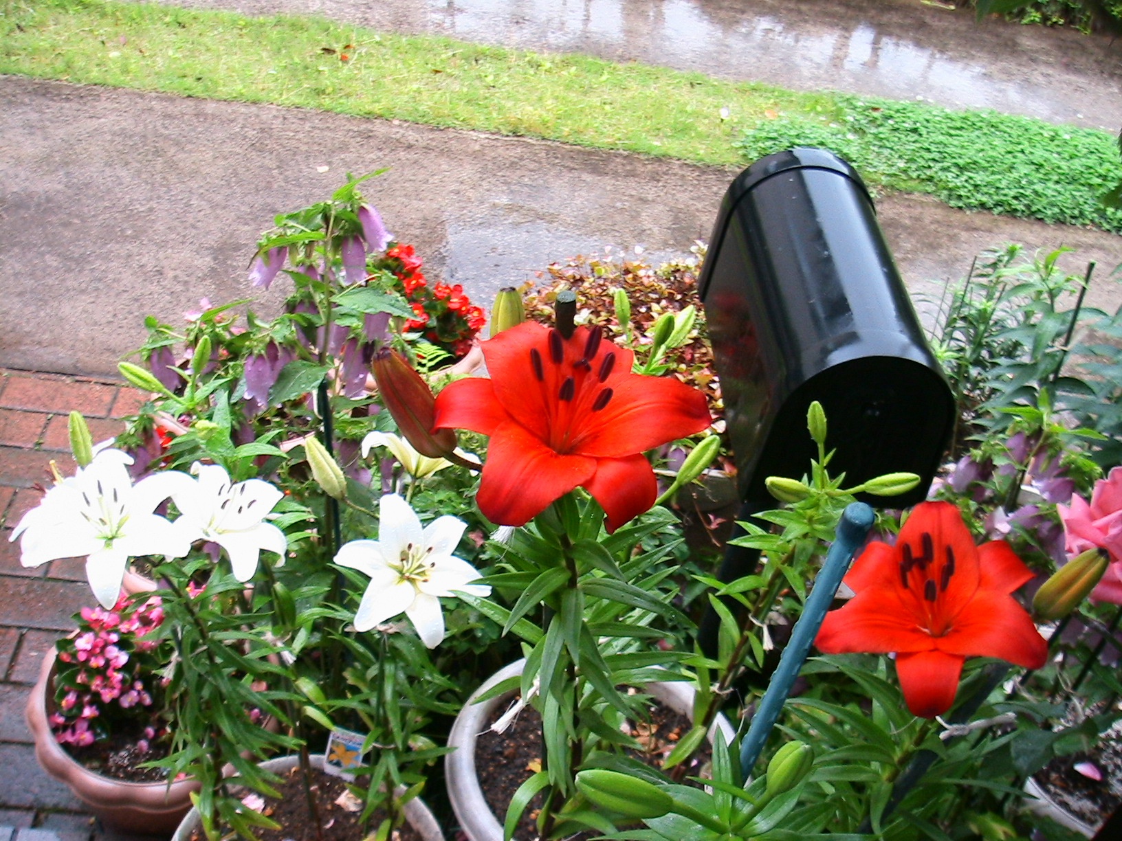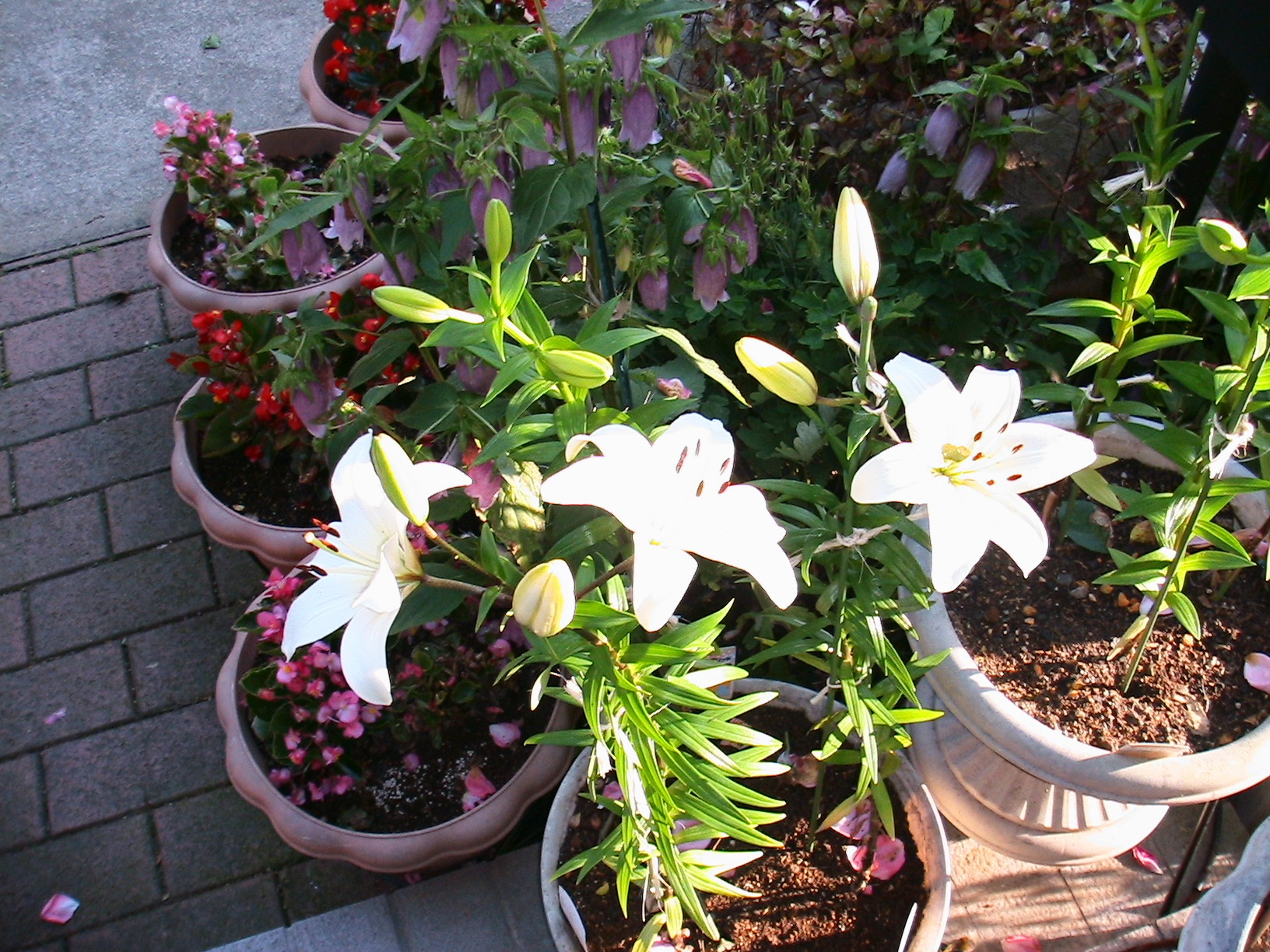 ユリ類「カサブランカ」を除きどんどん咲き出したが最初のものはもう散りだした。