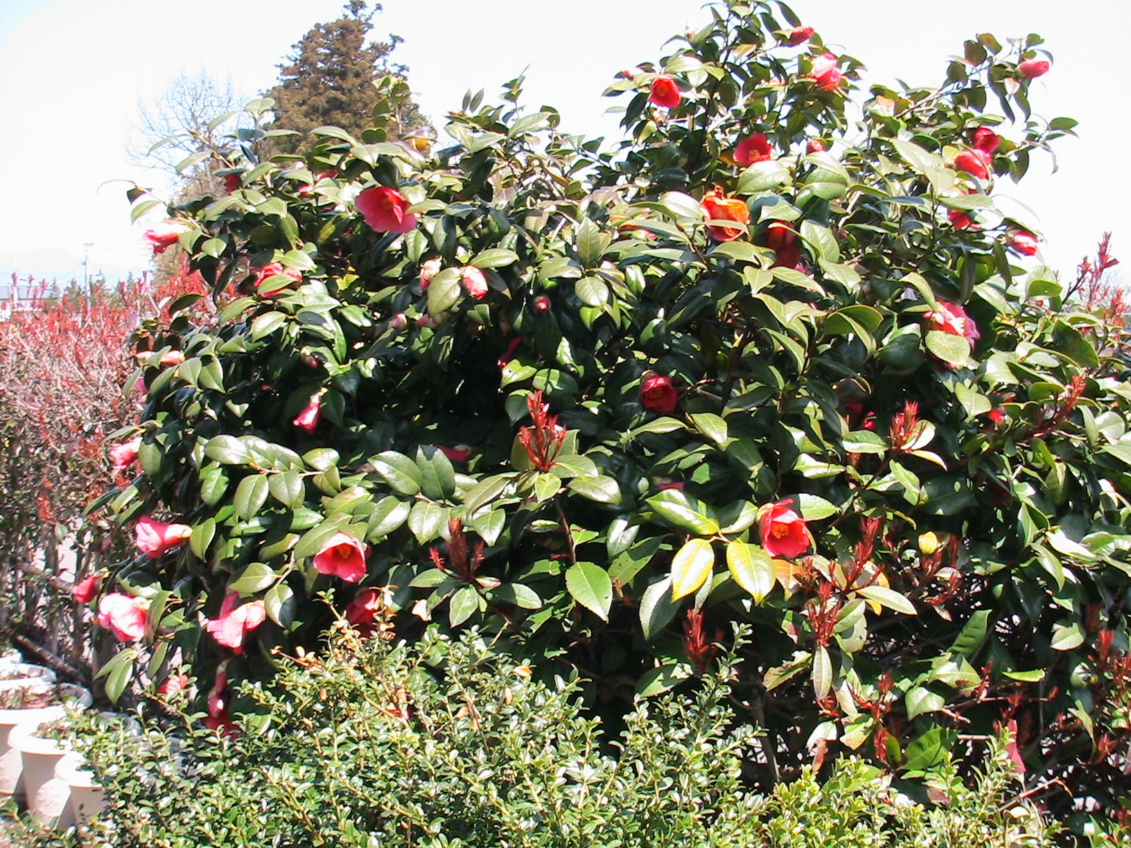 山茶花と椿が同時に、山茶花は花も小さく数も少ないが椿は100花。