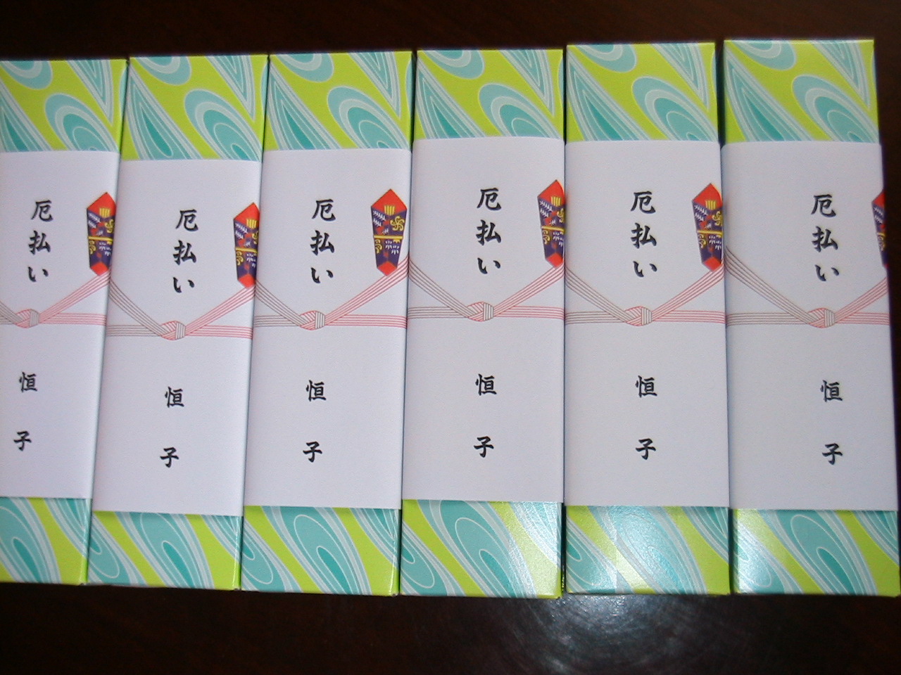 当地の風習で「名入り洗剤」を厄流しで知人に配る。